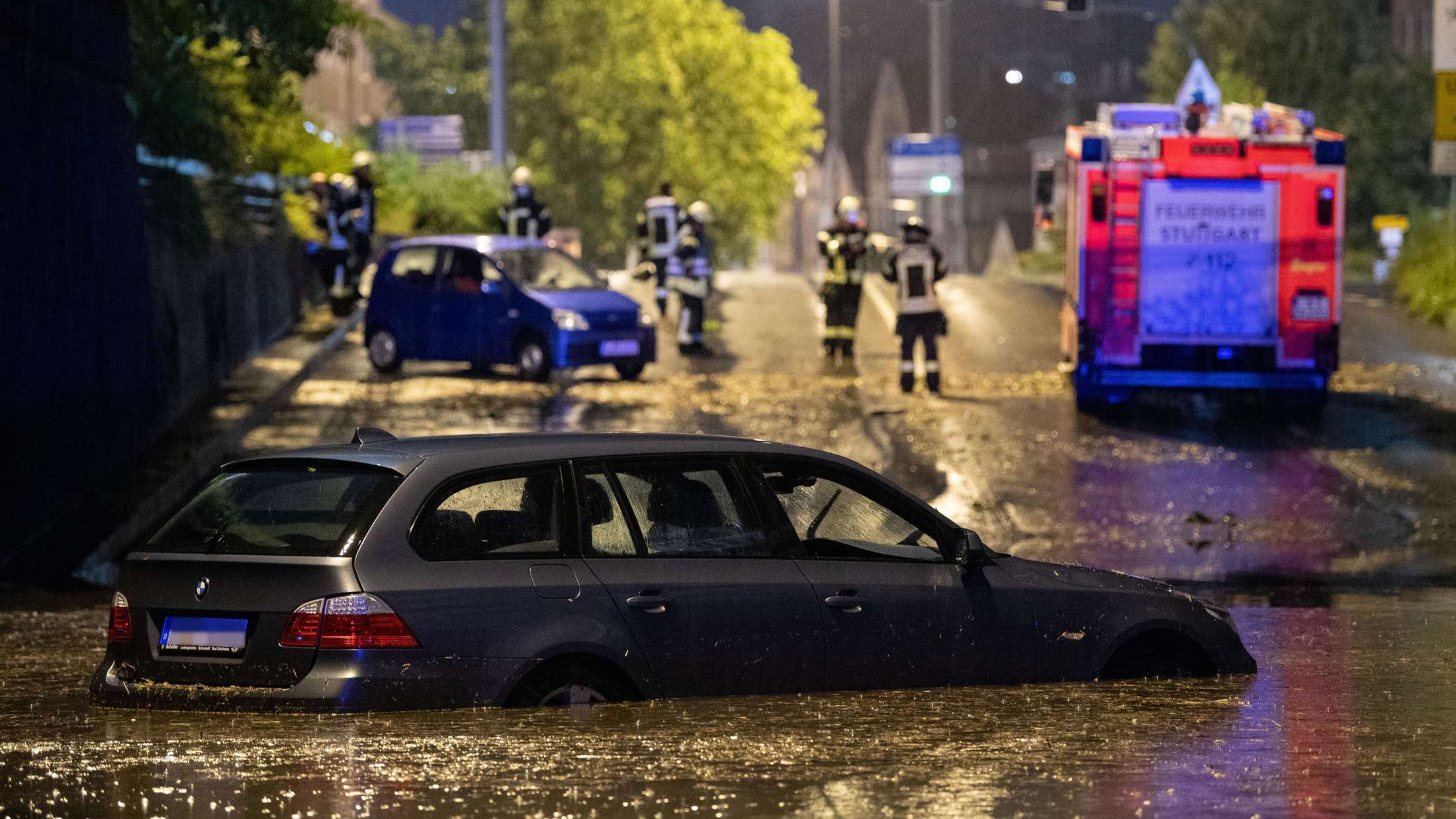 Überflutete straßen, umgestürzte bäume und gestrandete reisende nach wärmegewittern in deutschland.